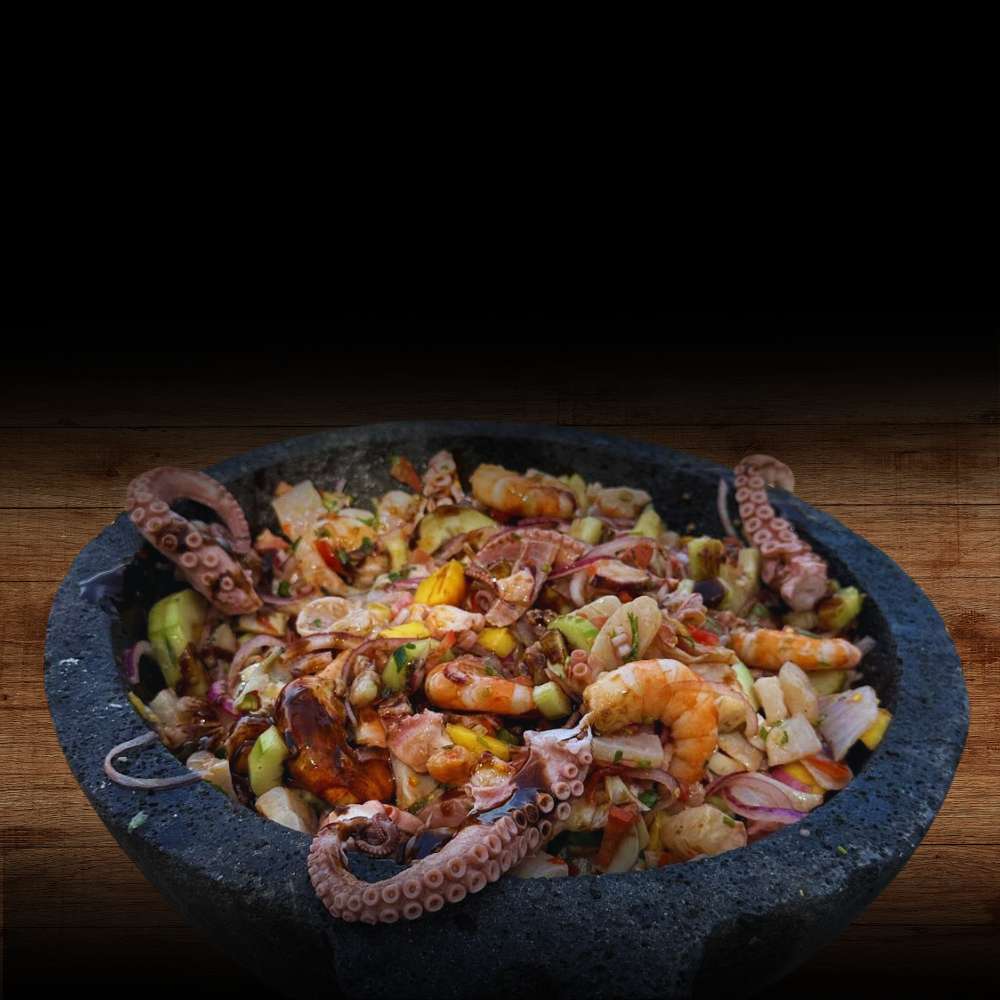 Disfruta en Ola Marina Restaurante de nuestro Molcajete de Marisco: pescado, pulpo, camarón y jaiba, cocinados a la perfección y servidos en un tradicional molcajete. ¡Un festín de sabores marinos!